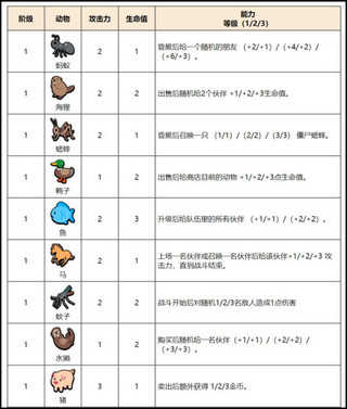 Blowfish/河豚(3/5): 暴怒:造成伤害随机对 1 个敌方随从受到 2/4/6 点伤害Camel/骆驼(2/5): 暴怒:受到伤害给予后方 1 名我方随从 +1/2/3 攻击力、+2/4/6 生命值