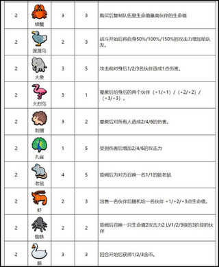 Tiger Cub/小老虎(4/3): 前方 1 个队友在战斗时释放 2 次能力(第二次能力基于老虎等级施放)