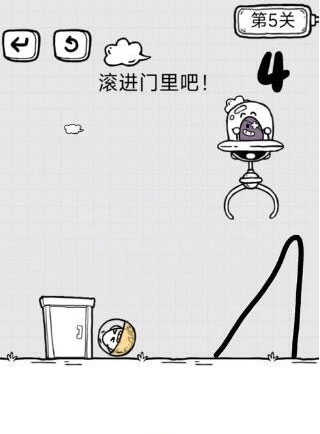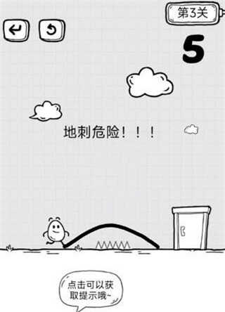 然后茶叶蛋跑到中间的弹簧,会被弹起来,之后会碰到空中的线,正好掉到平台门口,进门即可过关。
