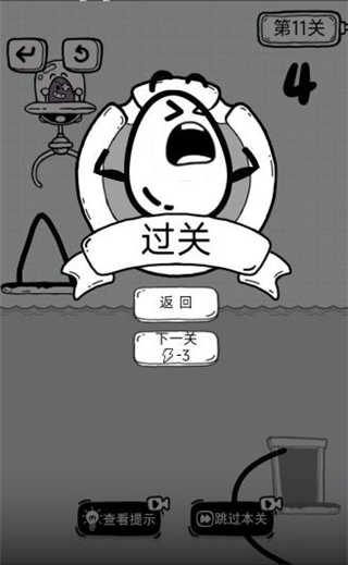 然后茶叶蛋会在水面上漂浮,大家如图再画一条曲线,然后曲线会带着茶叶蛋一直沉到水底,进入门即可通关。