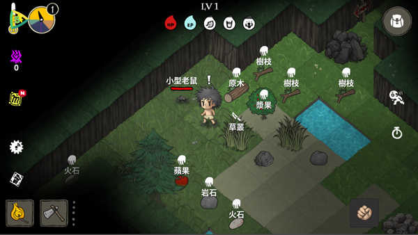看完后即可正式进入游戏,游戏采用点击式移动,玩家需收集道具、食物、装备等;