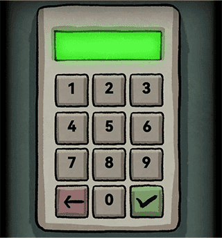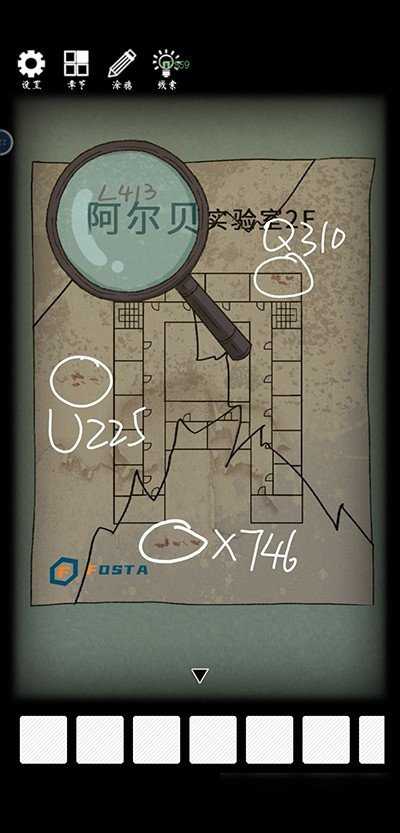 左转,将所有图片摆放在桌子上,运用放大镜细察,获取四个数字。依据线索,得到密码69416。