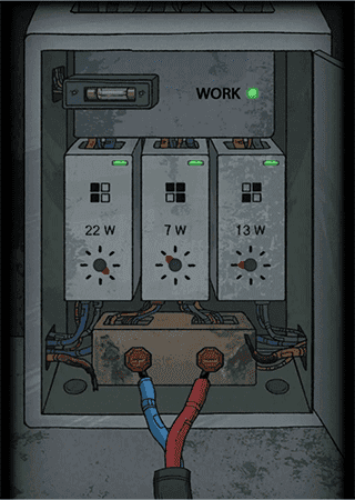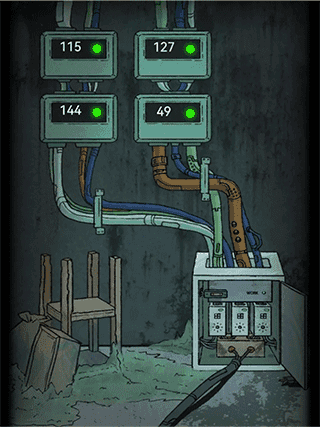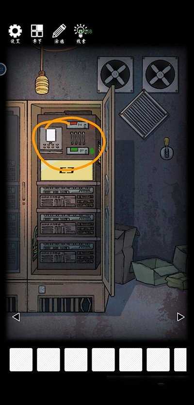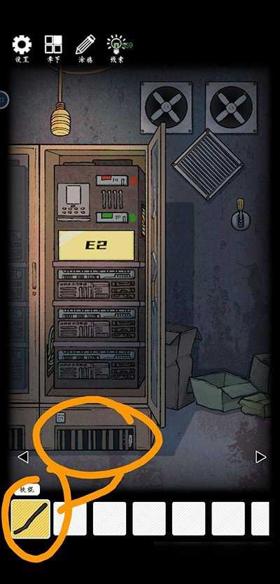 左转,点击柜子,进行小游戏,接通电源。