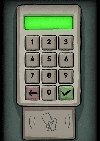 输入正确密钥,出来机器卡,门禁卡放上