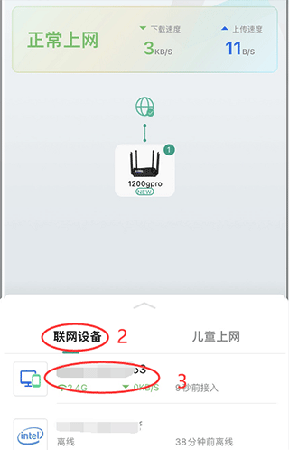 二、点击【首页】-【联网设备】,选择需要限速的用户