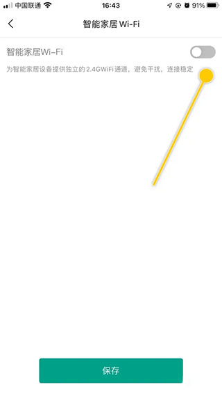 在“智能家居Wi-Fi”界面中,勾选“智能家居Wi-Fi”选项的勾选开关。