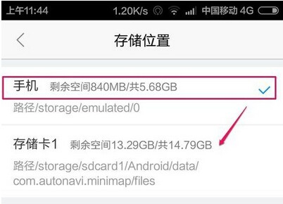 3、选择手机存储即可。