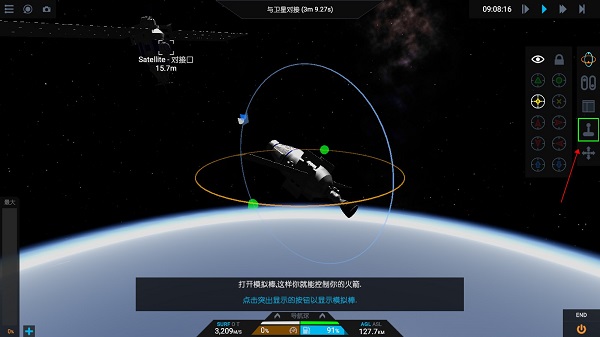在这里玩家可通过“对接练习”模拟与卫星的对接。只要您的火箭轻松前进,给卫星一个小吻与您的对接端口,一旦您在近距离内,对接端口将开始施加一个小小的磁力,以帮助对接端口的成功性。