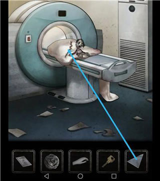检查室,点击玻璃里的机器,木偶放进去,外面电脑显示两个图案。
