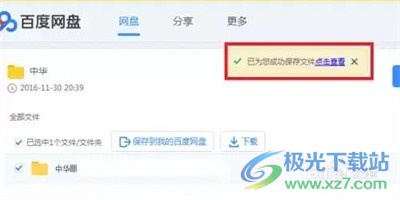 4、看见【已为您成功保存文件点击查看】这时候点击查看自己的文件就可以了,或者从百度网盘客户端去看。