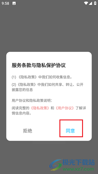 1、进入软件查看协议,点击同意就可