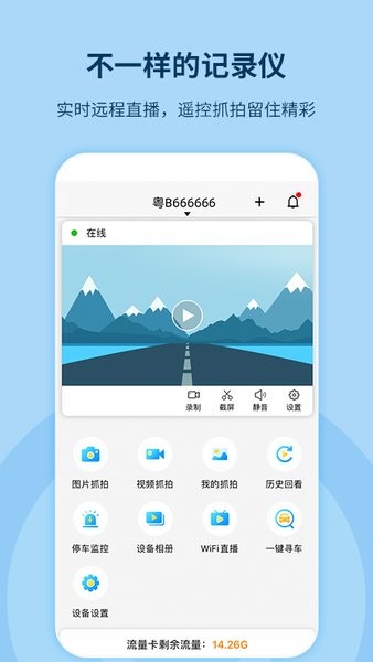 路者记app是行车记录仪的管理软件,它能帮助您远程操控和管理记录仪。设备绑定后,您可以查看实时画面、截图、录制视频等,并将录制的视频分享到社区动态。