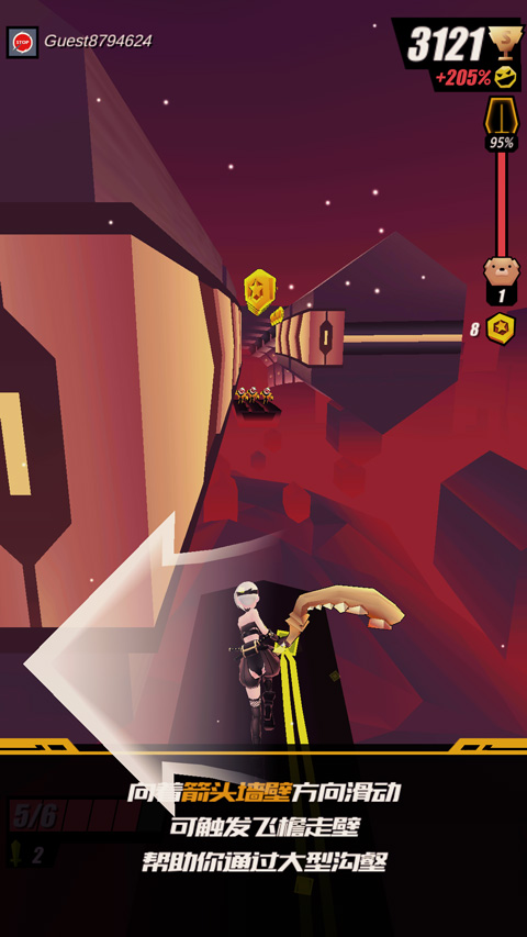 咦,前方没有路啦,这时可以左右滑动在带有箭头的墙上行走,哈哈哈有没有飞檐走壁的感觉呢