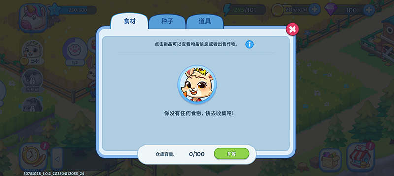 仓库:食材、种子、道具都放仓库啦!不够用可以扩建;