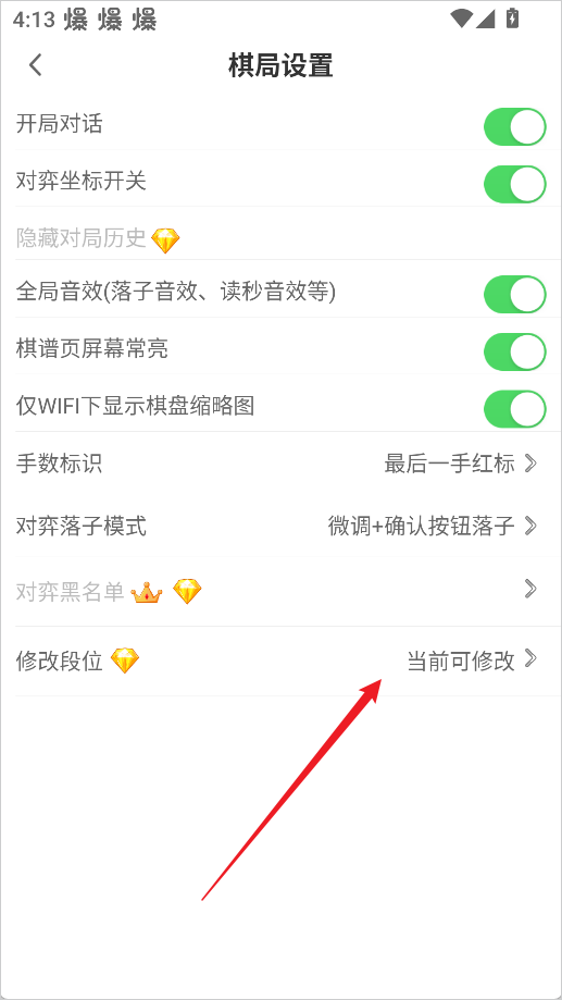 进入设置后,找到【修改段位】选项,点击即可进入段位调整界面。