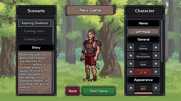 点击new game后需要创建一个角色,你可以自定义自己的角色形象。
