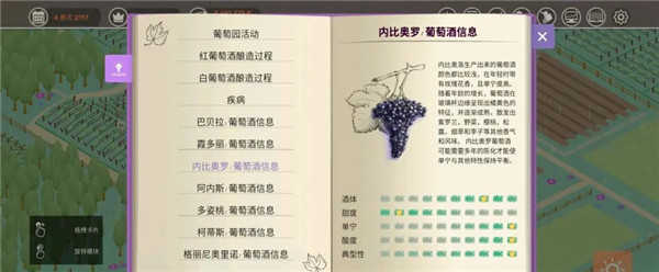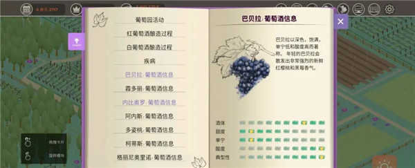 提供多种葡萄品种,每种葡萄都有独特的生长习性和酿造特点,玩家可根据土壤和气候选择合适的品种。