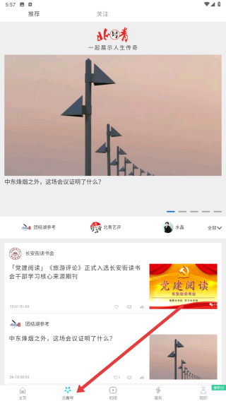在APP底部点击推荐,进入推荐页面,可浏览各类推荐内容,如新闻资讯、文化相关内容等。