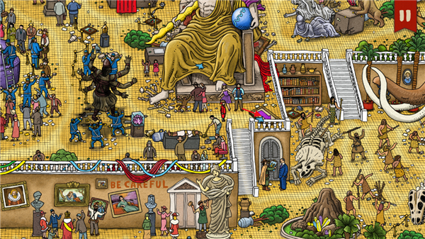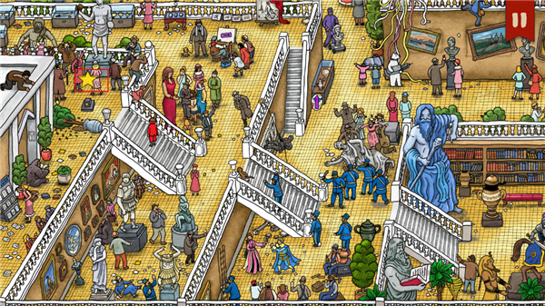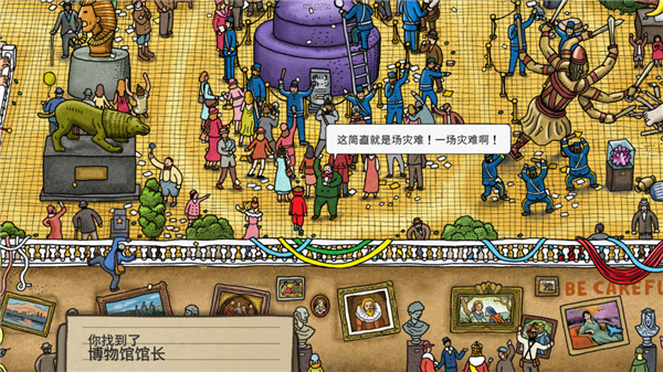 一定会有一个蓝色衣服的邮差提供线索,剩下的都在一些可以互动的道具里,每一关还有一个歌女唱歌,歌词也很有趣。