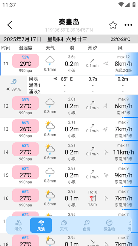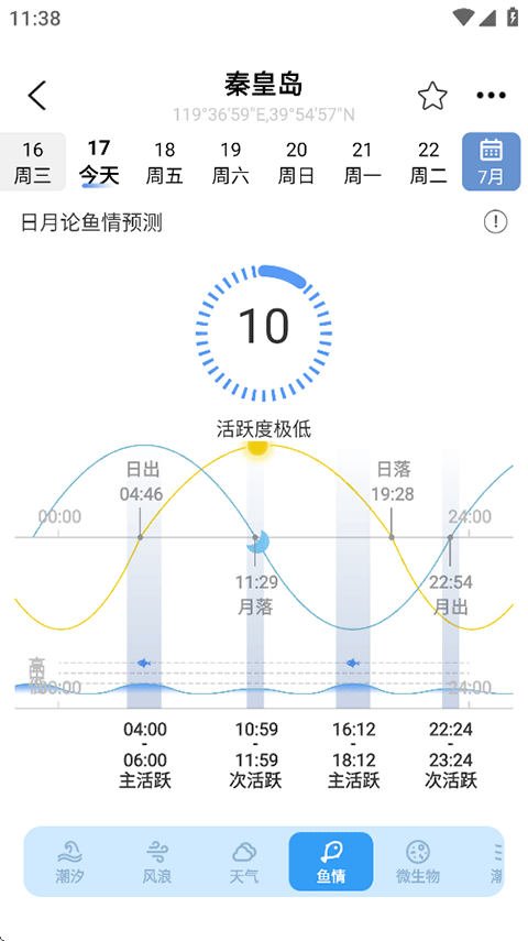 每小时天气/风浪实时预报及鱼类活动预测分析,轻松选择理想活动时机,让您不虚此行。