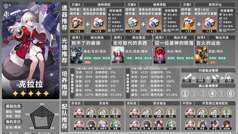 建议:开荒队,如果培养素裳作为物理C,存护行迹可以提升。